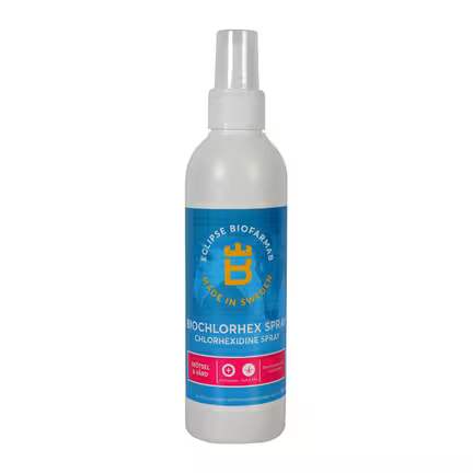 Eclipse Biofarmab BioChlorHex Spray er et antiseptisk middel med klorhexidin.