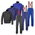 Lavtaljede bukser med aftagelige seler og sidelommer.