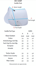 Sadelunderlaget har 600 denier polyester panel ved gjorden, der giver beskyttelse mod gnidning, dobbelte justerbare velcrostropper til fastgørelse i gjordstropperne og ved selve gjorden.