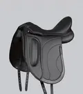 Dressursadeln har monoflap design, der giver en utrolig tæt kontakt til hesten og forfiner rytterens signaler.