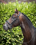 Premier Equine Stellazio Anatomic trense er konstrueret med læder af højeste kvalitet og anatomisk formet til at konturere rundt om hestens ører, næse og kindben.