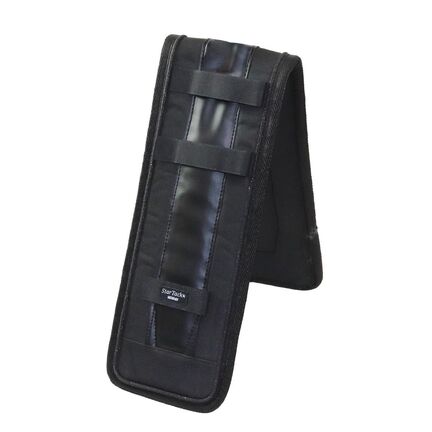Fastgøres med seks lange velcrostropper, så den også kan fastgøres til en bred sele.