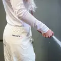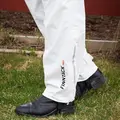 Den elastiske talje med snøre hjælper med at holde vandet ude. Bukserne har aftagelige benstropper og en lynlås med velcrolukning, der gør dem nemme at tage af og på efter behov.