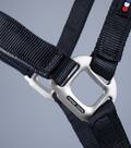 Den kan justeres i den ene side af nakken og omkring mulen.